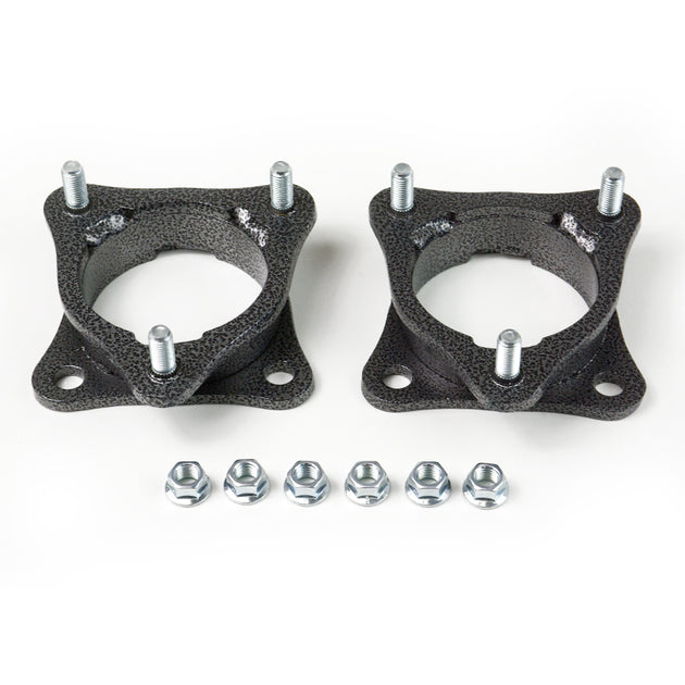 Front spacers or entry coilovers to kill factory rake and sharpen approach angle. Great with stock rear; fits most 33s on proper offset wheels. -